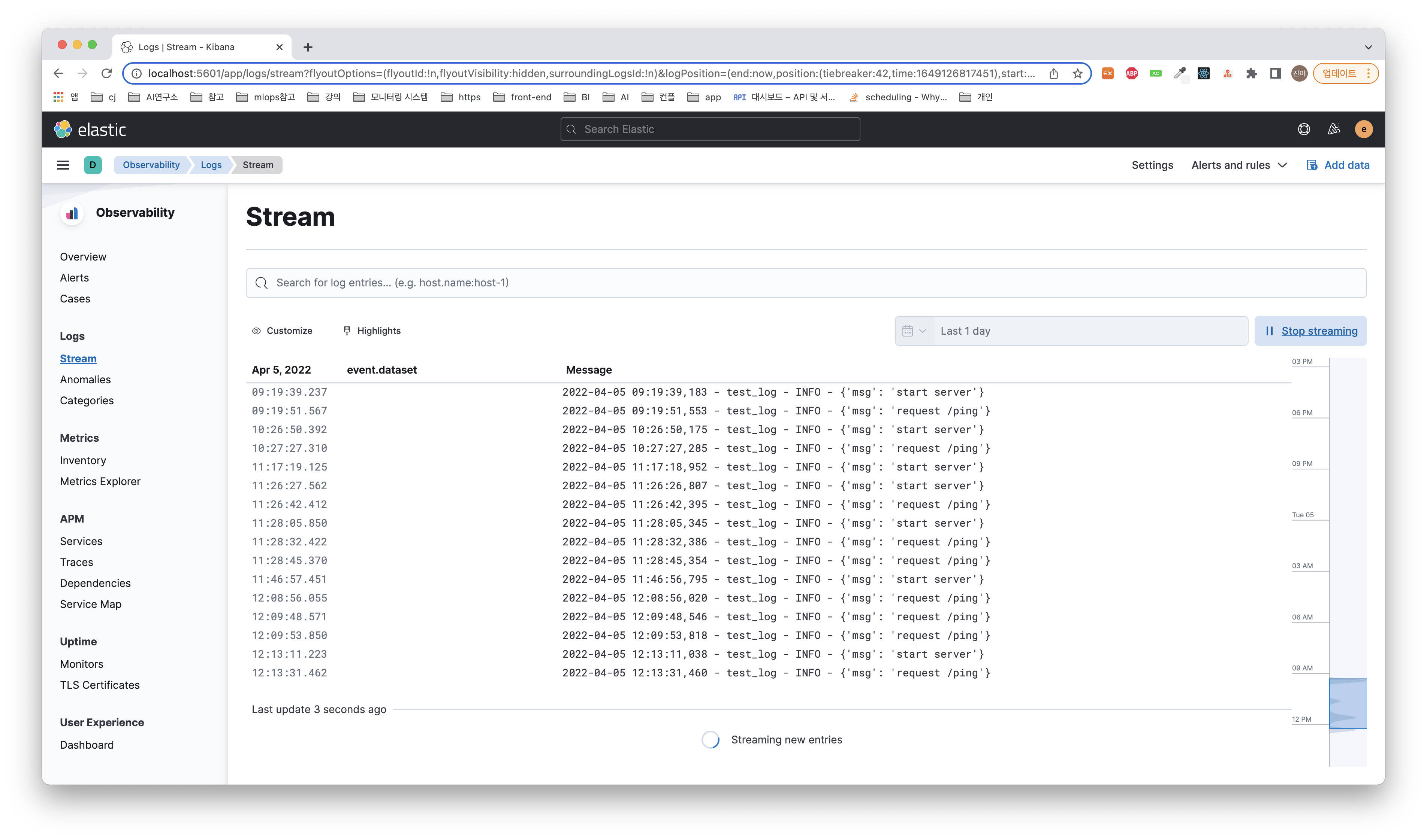 - 로그 스트림