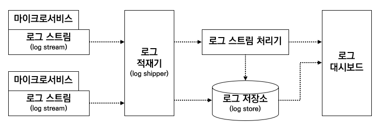 - 마이크로서비스가 만들어내는 로그 메시지의 스트림
