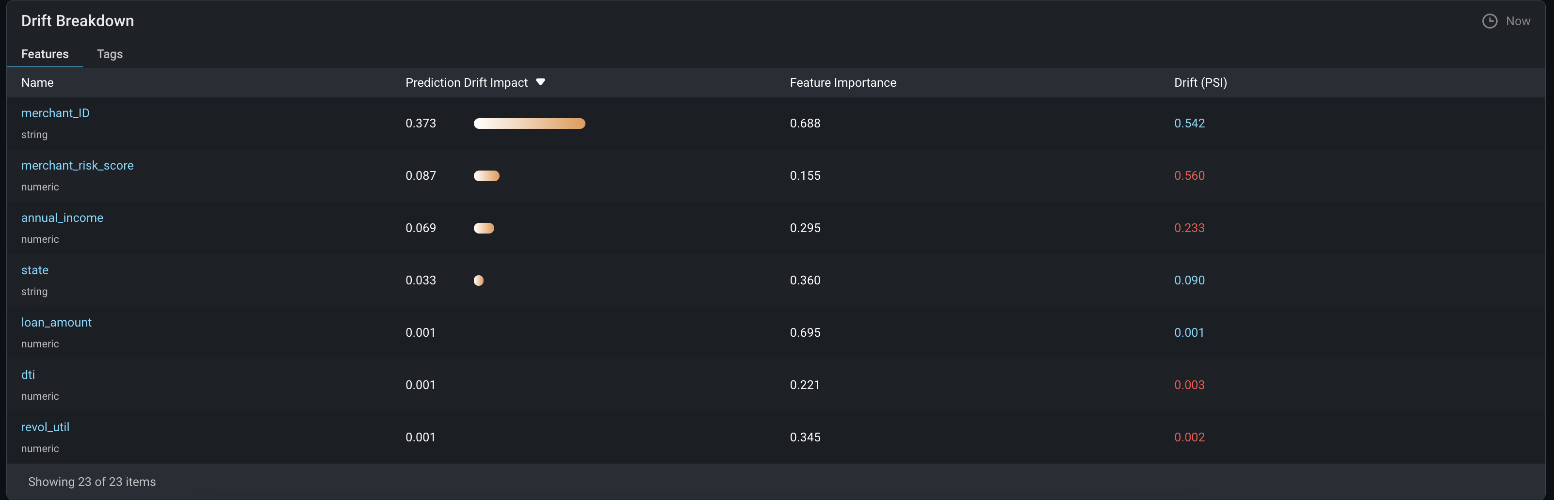 각 feature가 drift에 주는 영향도 확인할 수 있다.