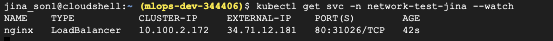 kubectl expose pod nginx -n network-test-jina --type=LoadBalancer --port 80
